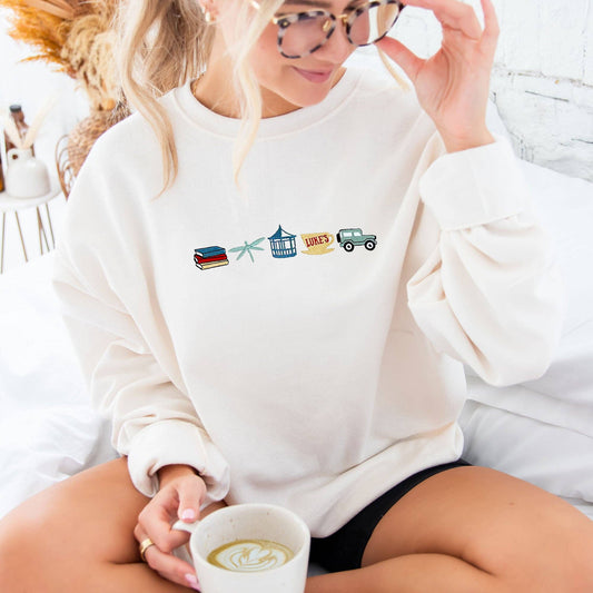 Gilmore Girls Icons Embroidered Gemma Crewneck Sweatshirt: Small / Sweet Cream
