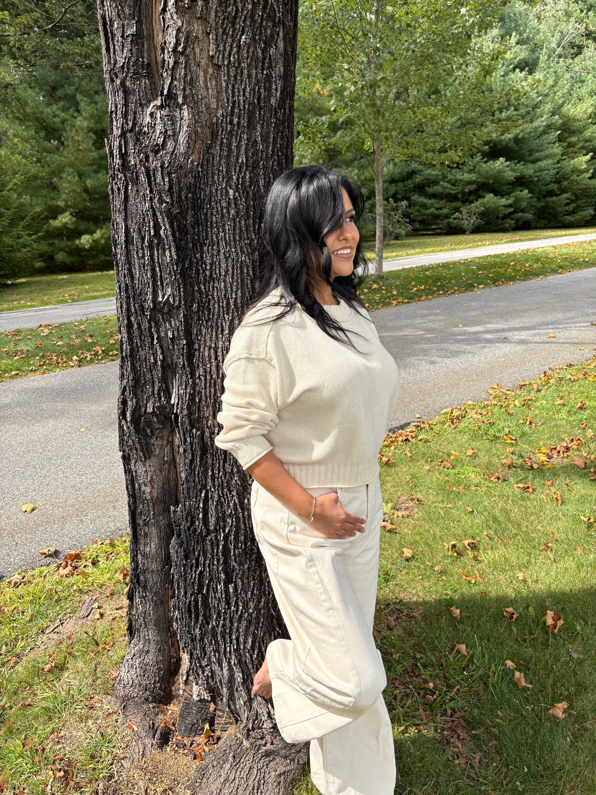 A modern twist on a classic silhouette, these jeans feature a 12” rise, 27” inseam, and 10” leg opening for a flattering barrel-leg fit. Crafted for comfort and effortless style, the Cloud color adds a soft, versatile touch perfect for any wardrobe.