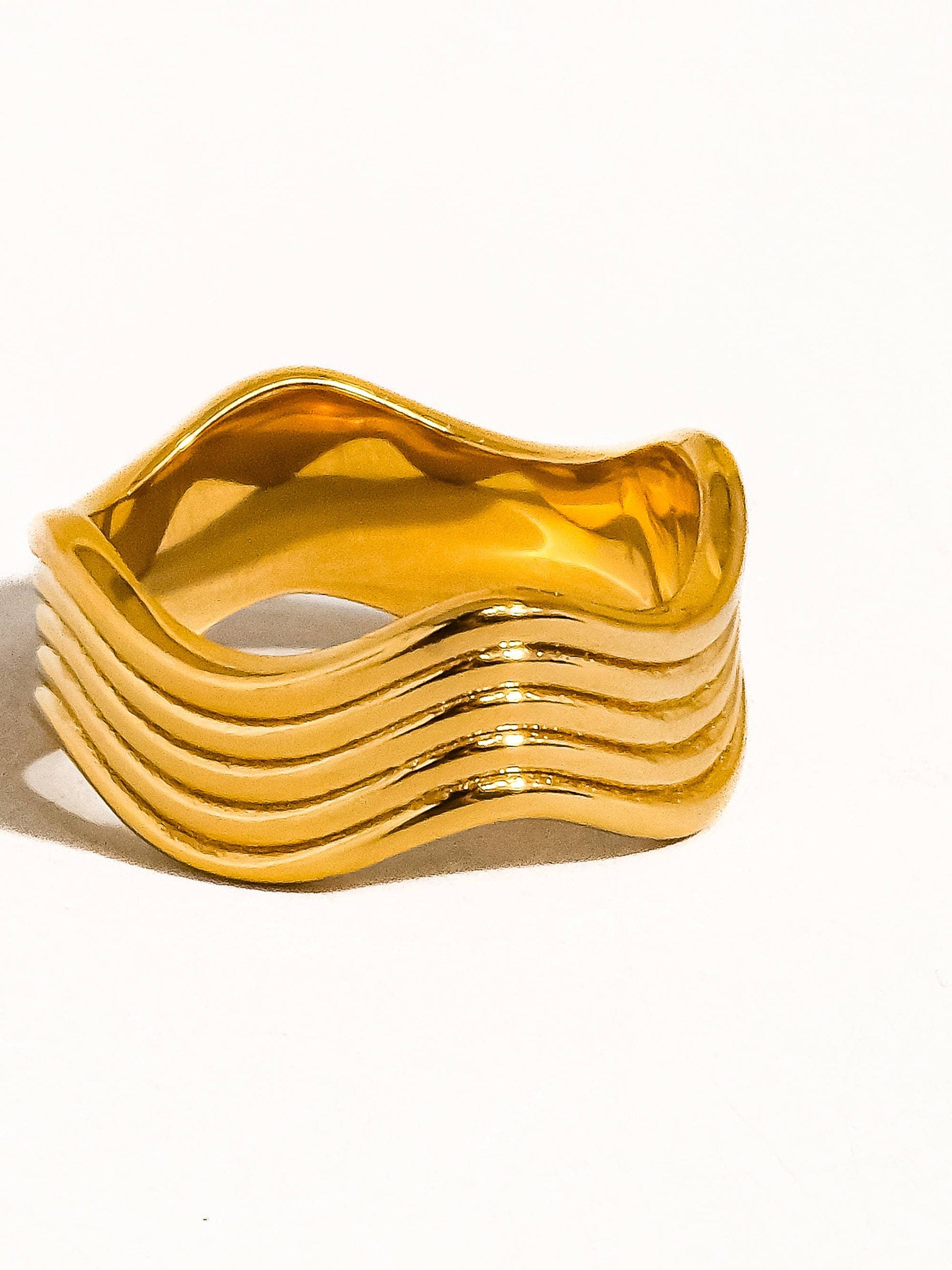 Ivan 18K Gold Non-Tarnish Wavy Ring: Yellow Gold